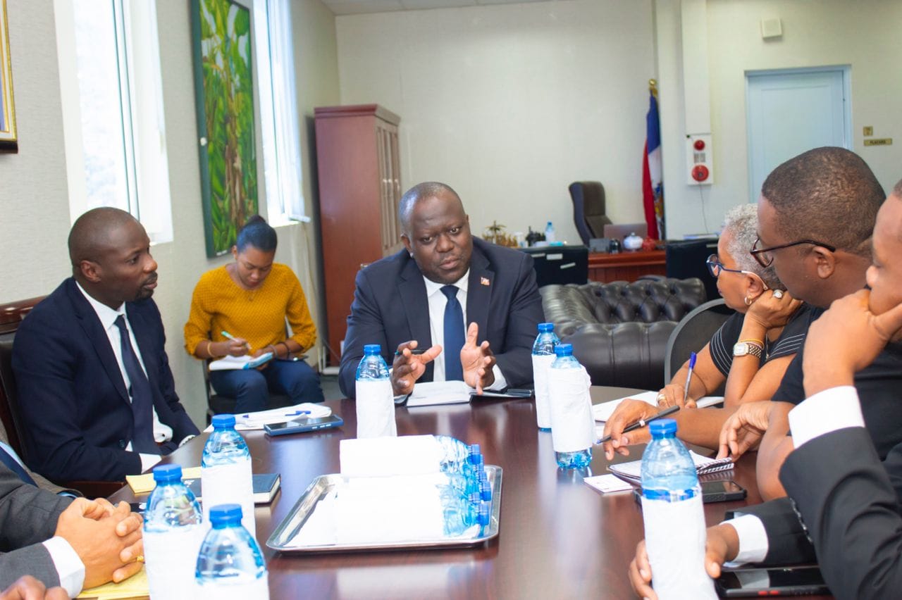 Port-au-Prince le 26 septembre 2023.- Le Ministre du Commerce et de l’Industrie, M. Ricardin Saint-Jean, a organisé ce mardi 26 septembre 2023, une rencontre avec les représentants des différentes Chambres de commerce en Haïti en vue de discuter et de trouver conjointement de nouvelles stratégies pour pallier les besoins immédiats de la population haïtienne pendant cette période de crise affectant les échanges commerciaux entre la République d’Haïti et ses voisins dominicains.