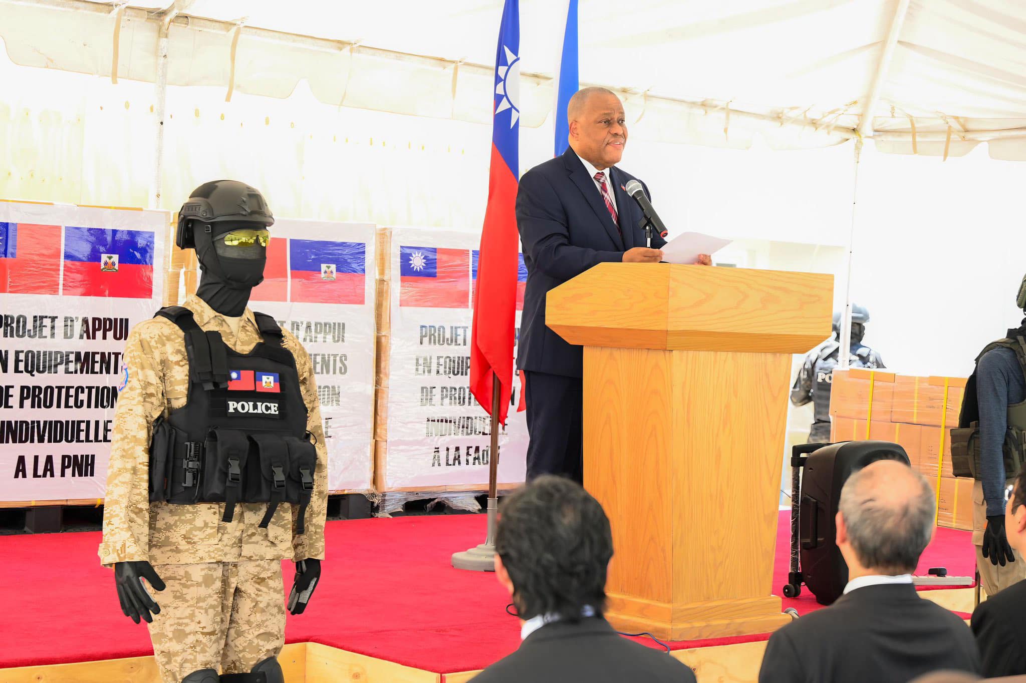 Ayiti resevwa atravè Premye minis, 𝑫𝒐𝒌𝒕𝒆̀ 𝑮𝒂𝒓𝒓𝒚 𝑪𝒐𝒏𝒊𝒍𝒍𝒆, 400 lo ekipman pwoteksyon pou Polis Nasyonal la ak Fòs Lame a, nan men peyi Taïwan, jounen jedi 29 dawout 2024 la.