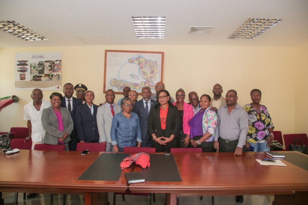 Après le sud, la Grand’Anse et les Nippes, la Ministre à la Condition Féminine et aux Droits des Femmes, Pedrica Saint Jean, a été accueillie dans le département du Sud-Est, ce mardi 18 février 2025, où elle a rencontré plusieurs hautes autorités locales. Parmi elles figuraient Jude Pierre Michel LAFONTANT, Délégué départemental du Sud-Est, Loudie CESAR, Mairesse de la ville de Jacmel, Yolaine Philippeaux, Mairesse de la Vallée de Jacmel et Enante BARTHELEMY, Mairesse de Cayes-Jacmel. Étaient également présents aux discussions, le commissaire du gouvernement de Jacmel, Lionel C. BOURGOIN, le Directeur départemental de la PNH du Sud-Est, le Commissaire Divisionnaire Jean Gabriel GABART, le Doyen du tribunal de Première Instance de Jacmel, Auméreau LAINÉ, ainsi que les Directeurs des bureaux régionaux et des membres de la presse.