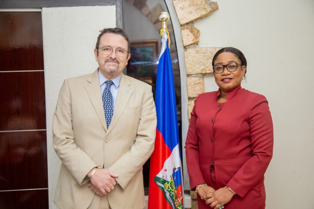Dans le cadre de la coopération entre le Ministère à la Condition Féminine et aux Droits des Femmes (MCFDF) et le Programme des Nations Unies pour le Développement (PNUD), une réunion s’est tenue entre la Titulaire du MCFDF, Madame Pedrica SAINT JEAN, et le Représentant Résident du PNUD en Haïti, Monsieur Xavier MICHON, le lundi 12 mai 2025, au local du Ministère à Delmas 83.